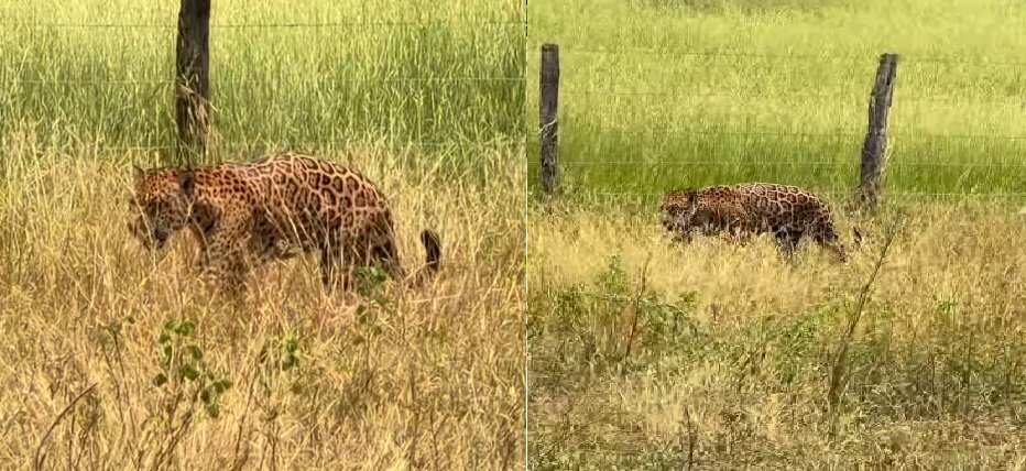 Um vídeo gravado na Transpantaneira, no Pantanal mato-grossense, mostra uma onça-pintada passando a poucos metros de uma equipe de filmagem e chamou a atenção pela