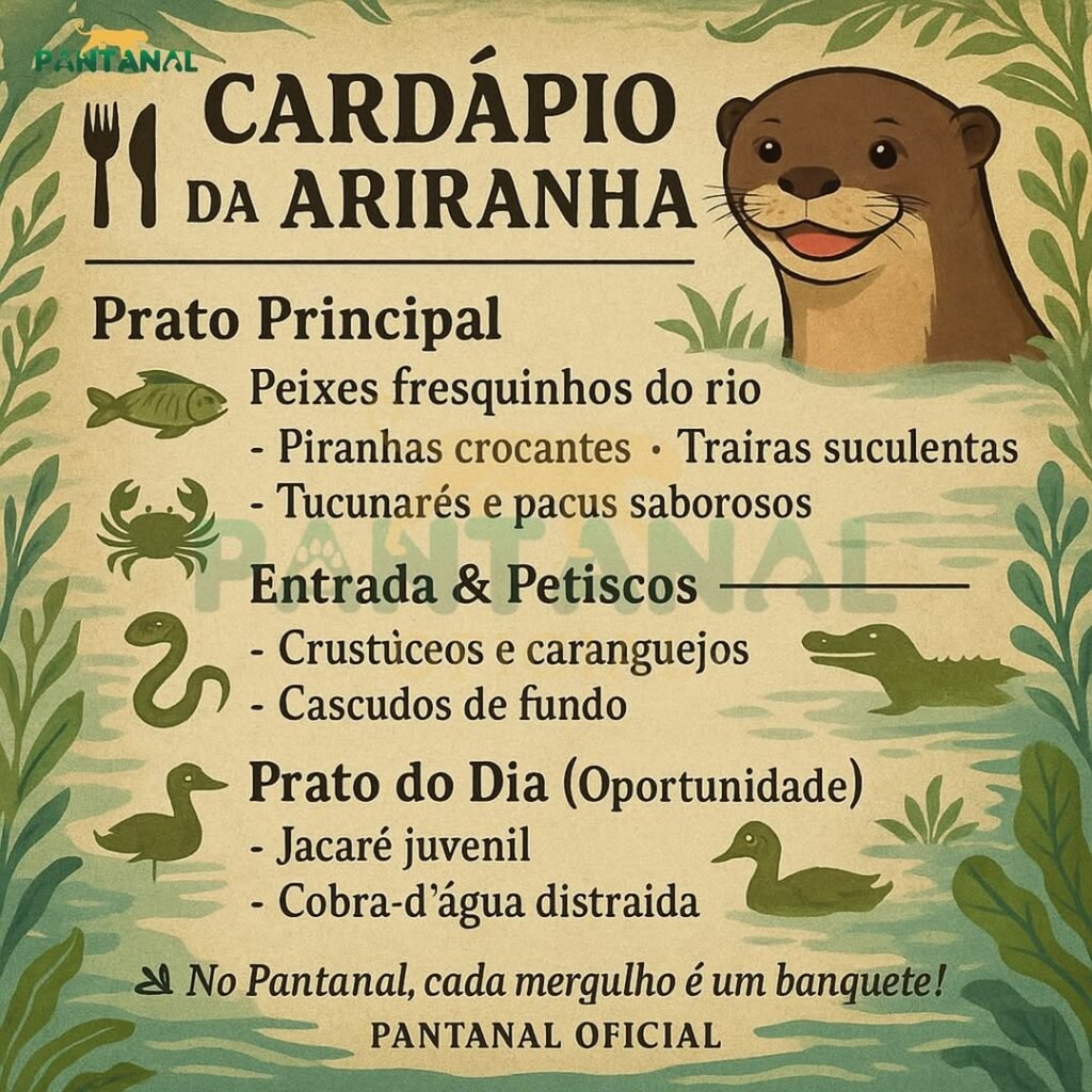 Uma imagem impressionante registrada por Andre Briso (@andre.briso) mostra uma ariranha (Pteronura brasiliensis) capturando um dourado, peixe conhecido por sua força, velocidade e valor na pesca esportiva. O flagrante chama atenção para a impressionante habilidade de caça desse mamífero aquático e levanta a pergunta: o que exatamente comem as ariranhas?