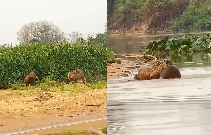 Ainda impressiona! Onça-pintada predando capivara em plena luz do dia no Pantanal.