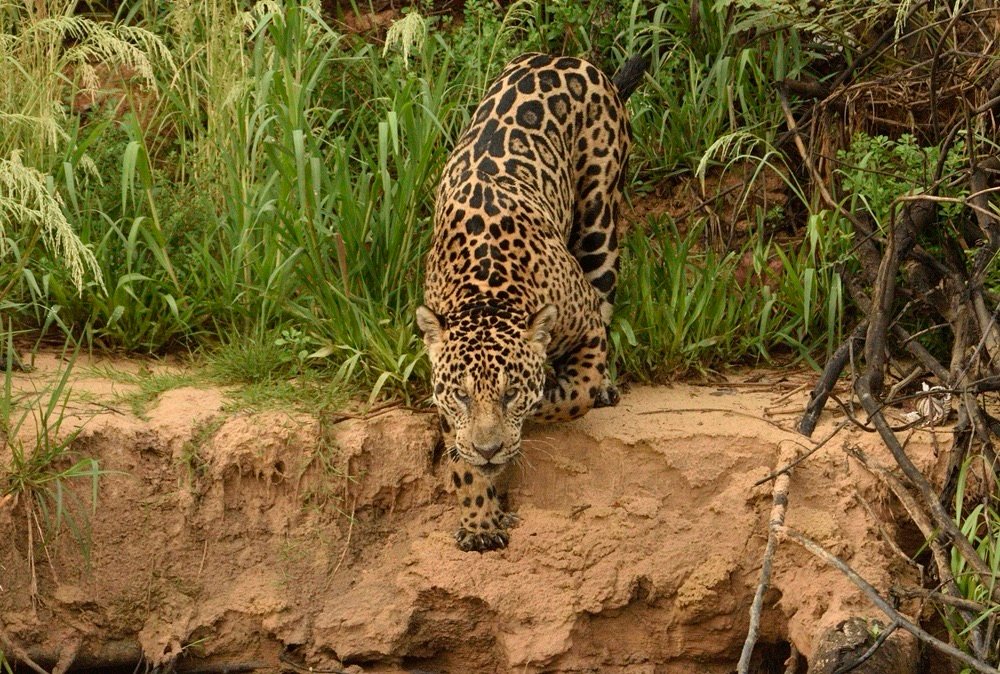 Espécie foi filmada por câmeras de monitoramento de uma guia na Fazenda San Francisco Uma onça-pintada foi flagrada com um jacaré na boca na pousada