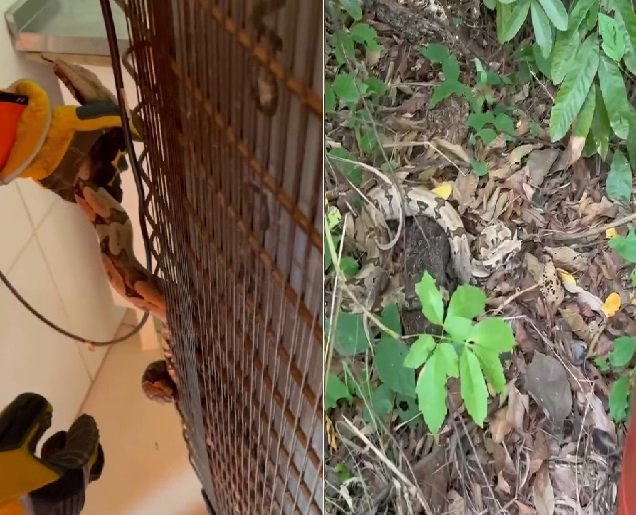 Uma jiboia foi resgatada por equipes do Corpo de Bombeiros Militar de Mato Grosso (CBMMT) após ser encontrada dentro de uma casa no bairro Jardim