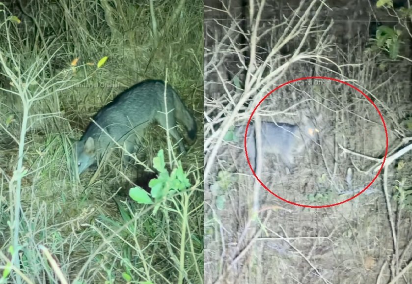 Durante uma expedição nas margens da rodovia Transpantaneira, registramos um lobinho (Cerdocyon thous), também conhecido como cachorro-do-mato — foi observado em comportamento de predação de