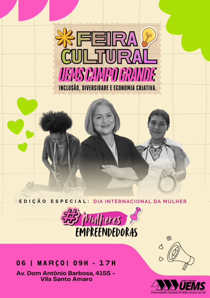 A Universidade Estadual de Mato Grosso do Sul (UEMS), Unidade Campo Grande, vai realizar no dia 6 de março de 2026 (sexta-feira), das 9h às 17h, mais uma edição da Feira Cultural UEMS. Esta será a primeira feira do ano e a segunda edição do projeto, que está sendo estruturado para integrar, de forma permanente, o calendário institucional da unidade.